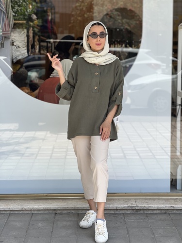 نام محصول : مانتو جلو بسته یقه7دکمه چوبی